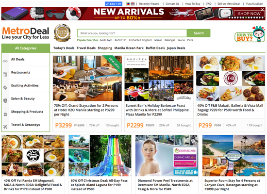 MetroDealは2011年7月に設立され、主にフィリピン市場向けにデイリーディールサイト「MetroDeal」を運営しています。取り扱い商品は家電、 日用品、装飾品、玩具、健康美容機器などの物販から、レストラン、スパ・サロン、シネマ、旅行ツアーなどのサービスまでと多岐にわたり、月間ユニークユーザー数160万人、Eメール登録者数300万人と、フィリピンのデイリーディールサイトでNo.1のポジションを確立しています。